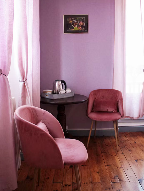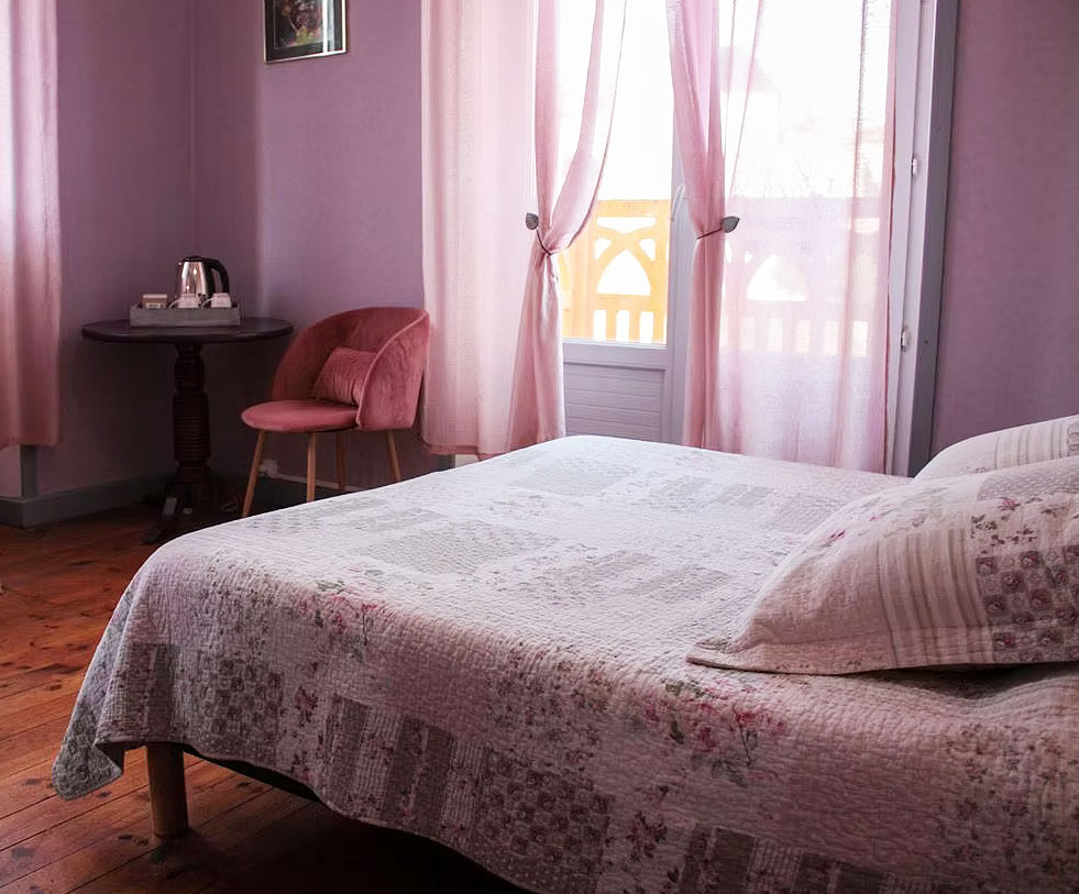 La chambre Betula Nana est exposée au sud ouest et bénéficie d’une vue sur la Tour des Anglais et sur le clocher de la collégiale Saint-Médard
